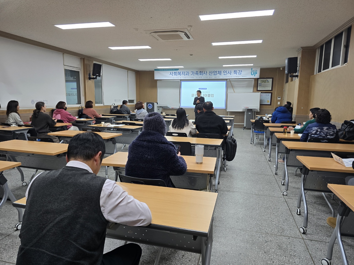 산업체 인사를 초청하여 사회복지현장에 대한 이해를 높이고 졸업반 학생으로서 취업에 대한 정보를 듣는 유익한 시간이었다.