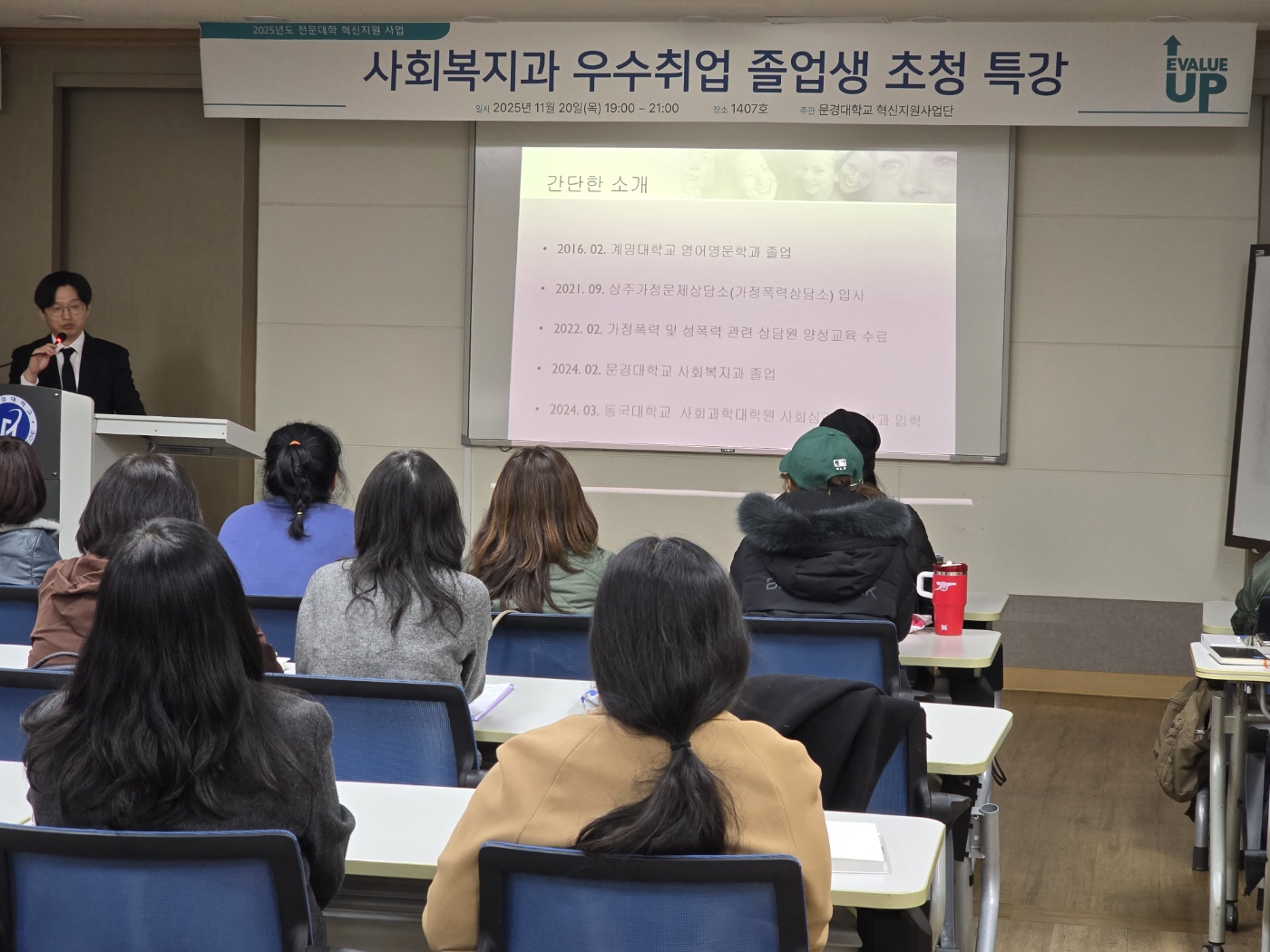 지역사회복지 발전에 기여하는 사회복지전문인 양성 지역사회기반 요양·돌봄시대, 문경대학교 사회복지과에서 준비하세요.